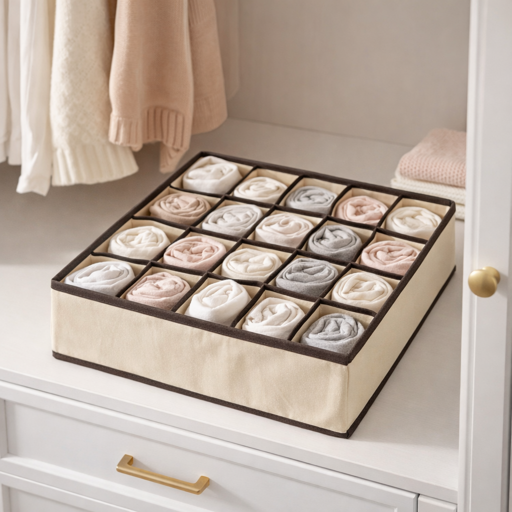 • Capacidade Máxima: 24 nichos individuais para organizar desde meias e lingeries até gravatas, lenços e pequenos objetos de escritório.
