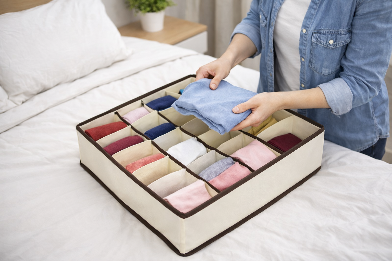 Encontre o que precisa em segundos e recupere o espaço perdido nas suas gavetas! Com o nosso Organizador de 24 Divisões, você acaba com o "bolo" de roupas e objetos espalhados, mantendo cada item no seu devido lugar de forma padronizada e elegante.